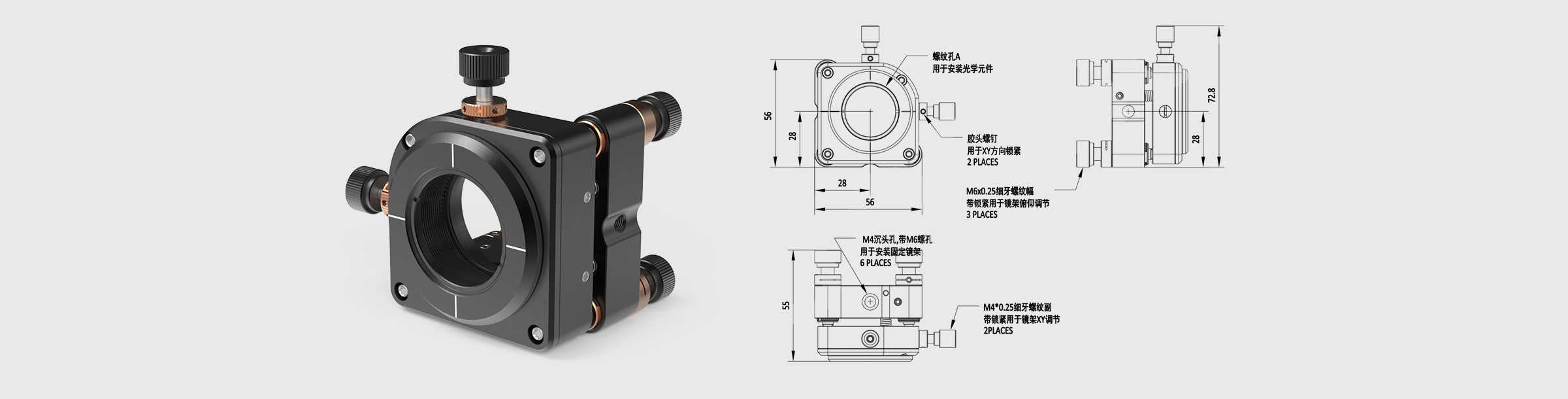 五轴光学调整架 可夹持尺寸30mm 最大厚度8mm
