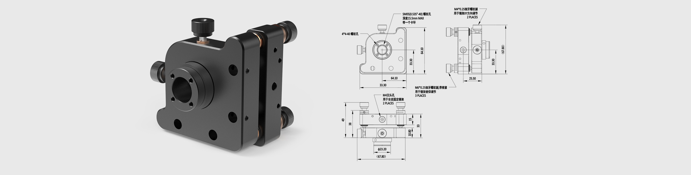 六轴光学调整架 可夹持尺寸12.7mm 最大厚度15.5mm