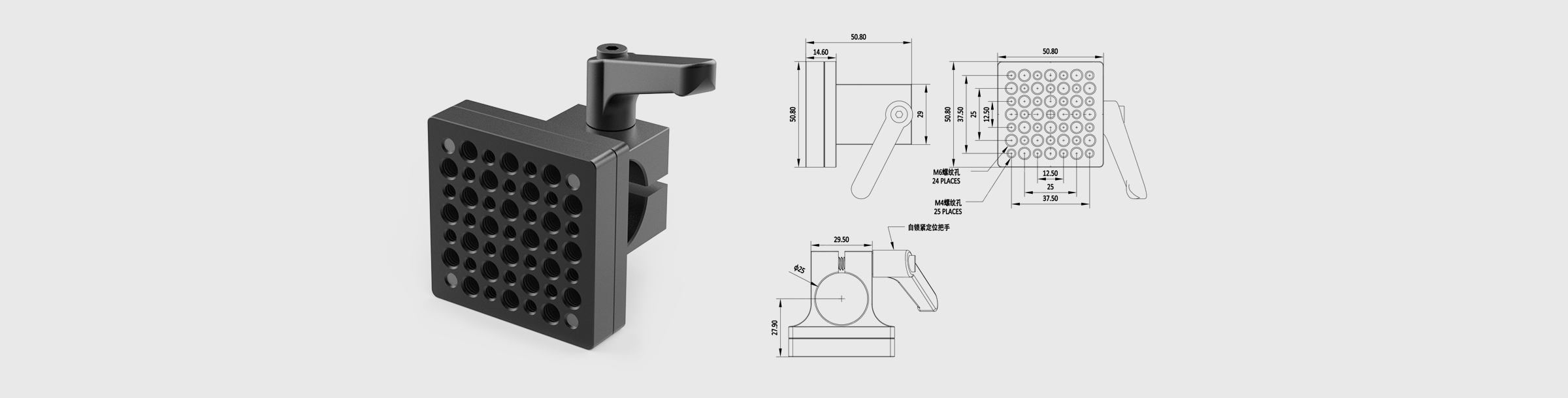 支撑棒转接件 配合支撑棒直径25mm 安装面尺寸50.8*50.8mm