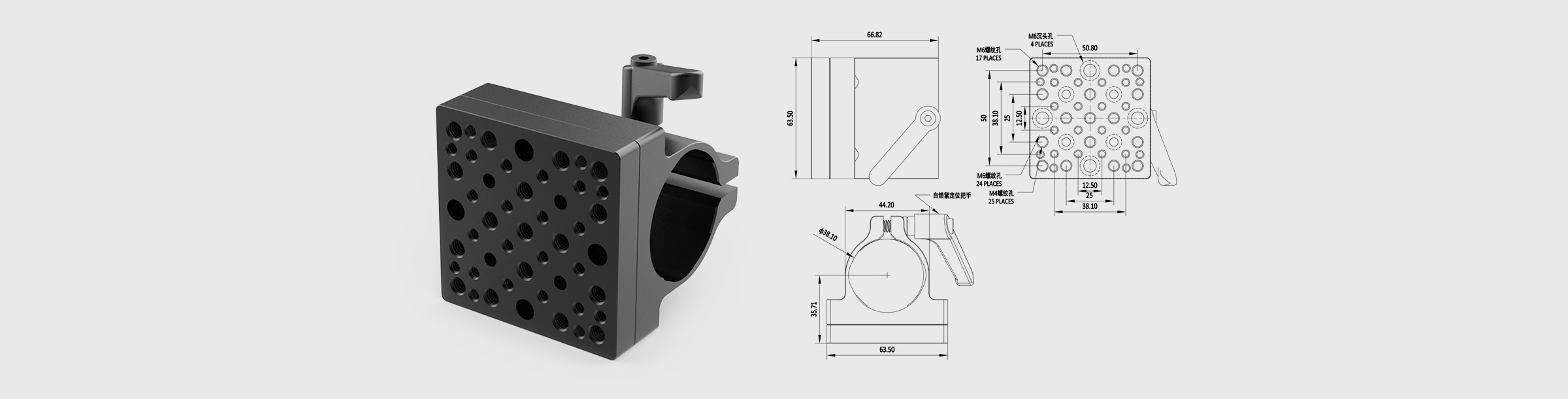 支撑棒转接件 配合支撑棒直径38.1mm 安装面尺寸63.5*63.5mm