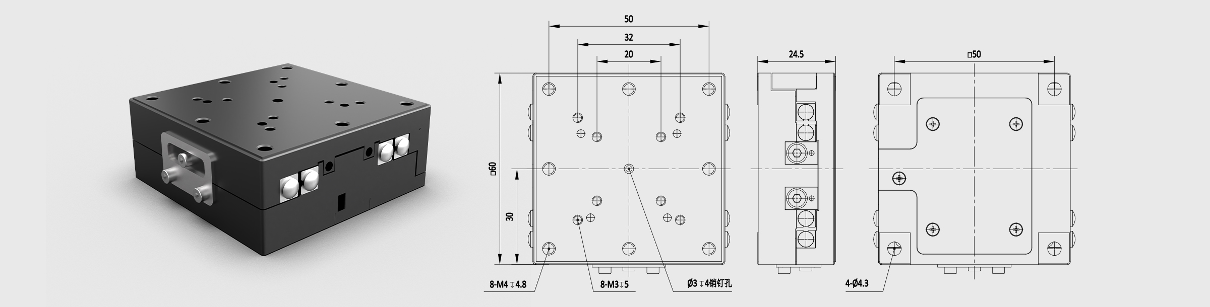 新品 30nm步进压电平移台 台面尺寸60×60mm 行程±12.5mm 包含控制器