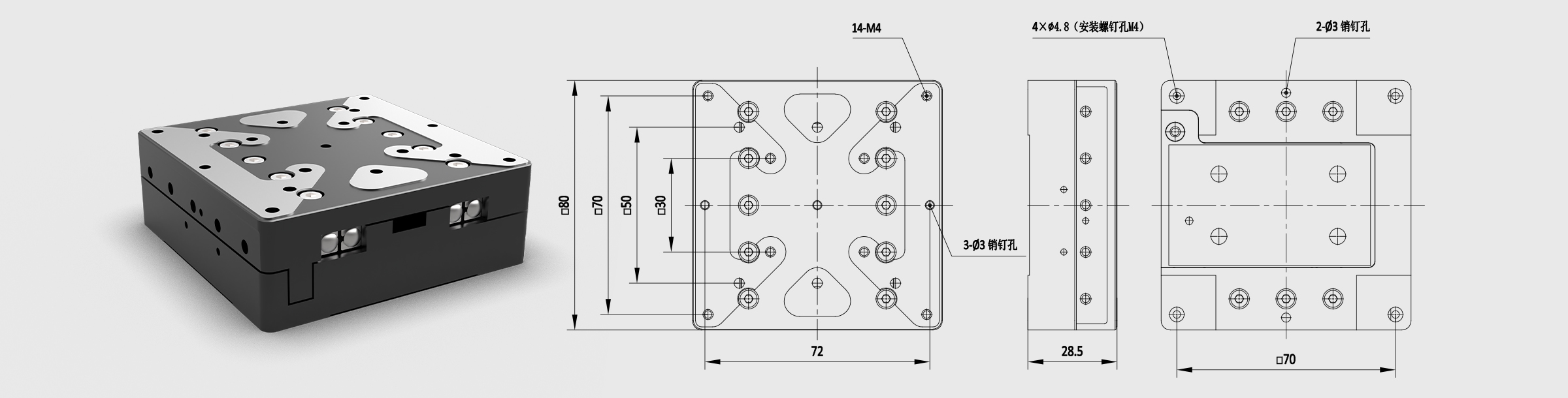 2. 采用不锈钢交叉滚柱导轨,具有高精度、高刚性,高线性度