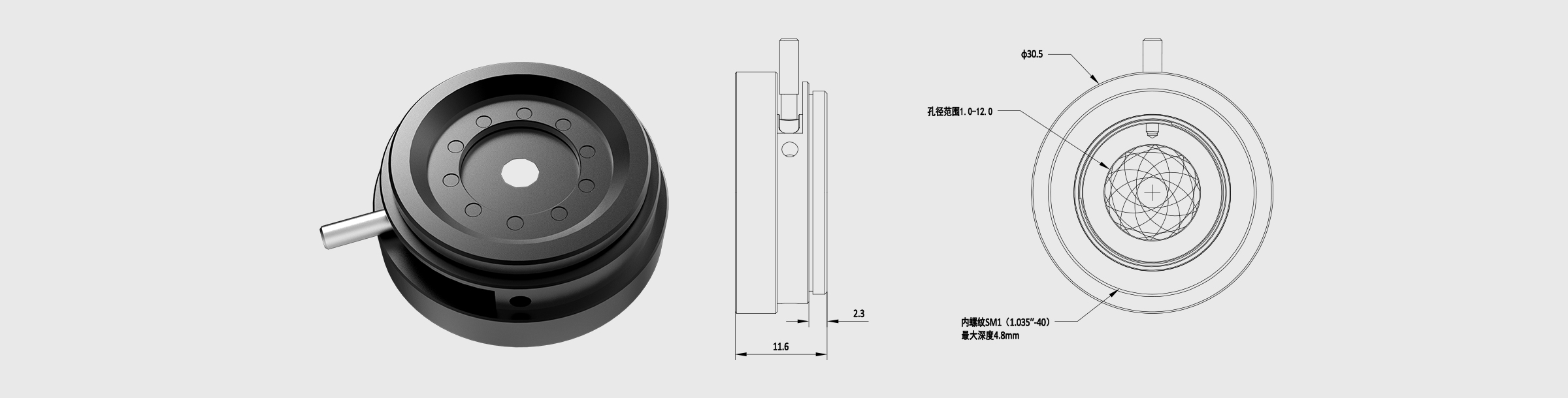 拨杆式带螺纹可变光阑 SM1 可调孔径范围1.0-12mm