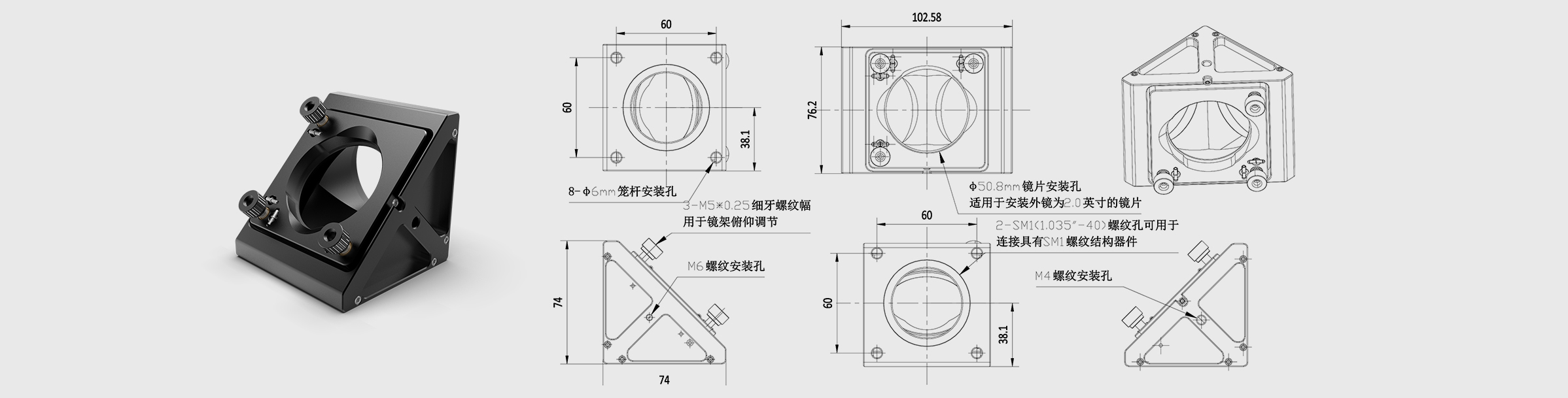 1. 530048和530049适用安装Φ50.8mm最小厚度6mm光学元件;