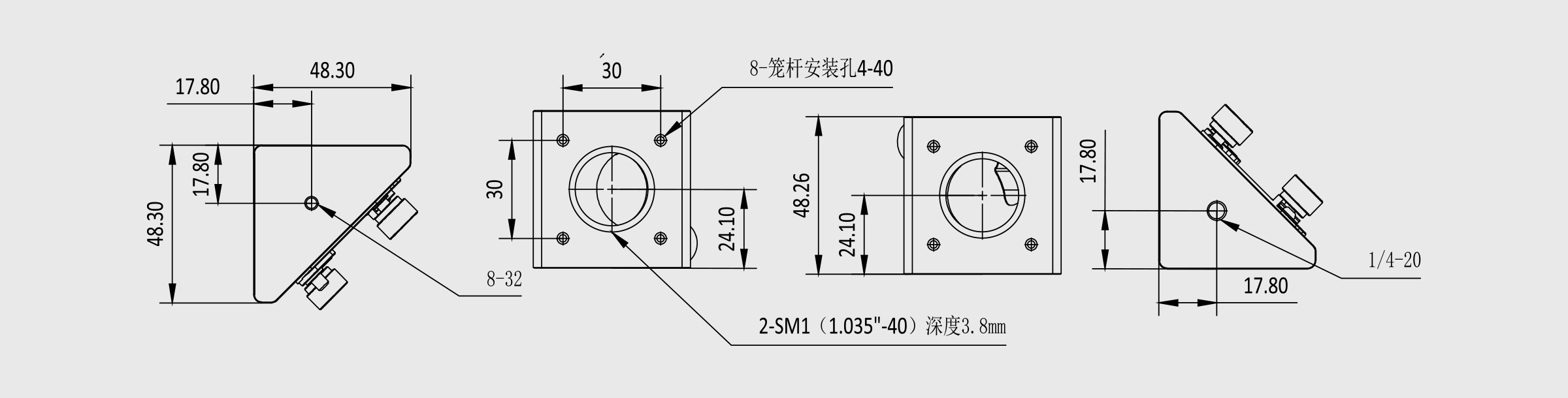 30mm笼式45°安装调整架 笼杆4-40螺孔安装 8-32/1/4-20螺孔