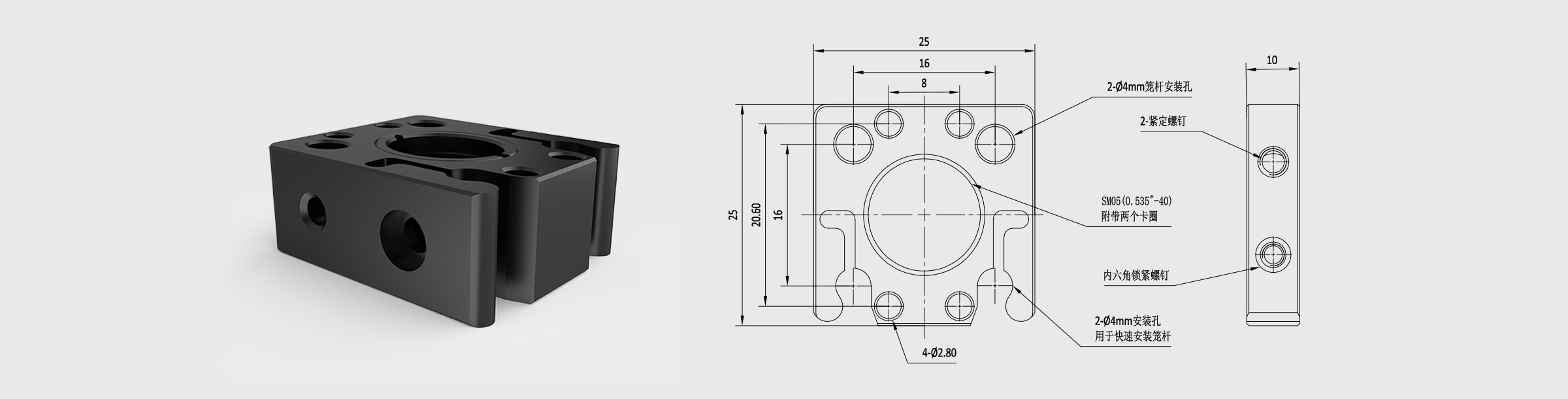 2. 光学元件固定方式:附带SM0.5压圈