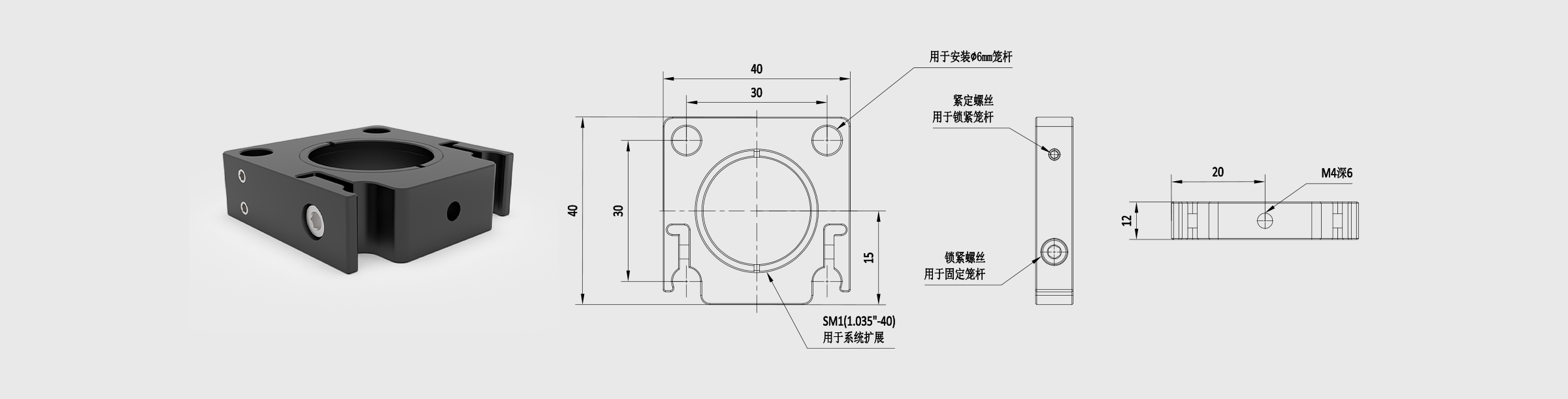 新品 30mm笼式段式笼板 安装镜片厚度12mm