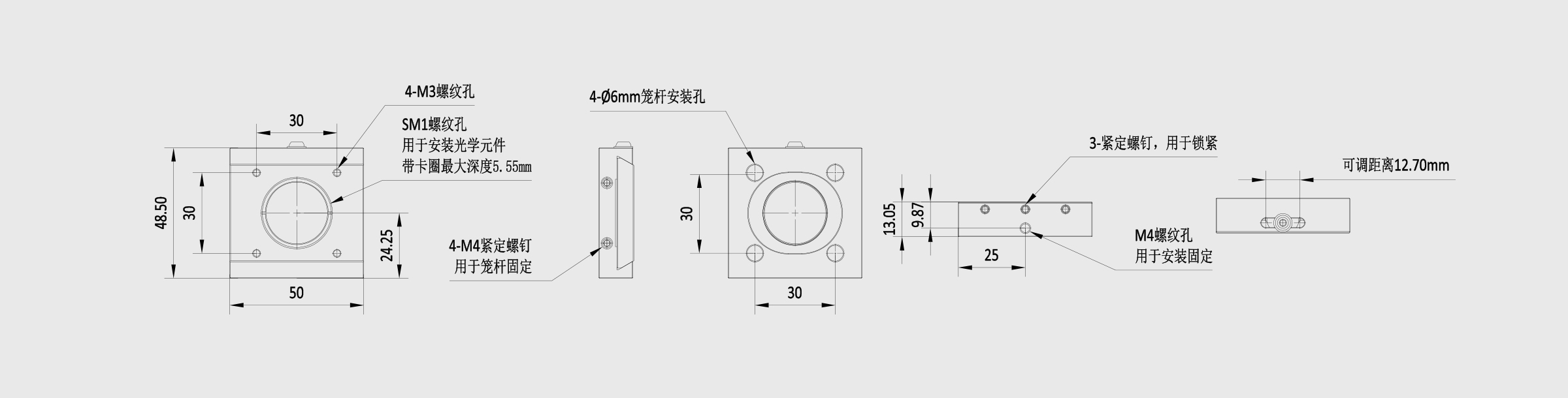 - 30mm笼式滑动滤光片安装座