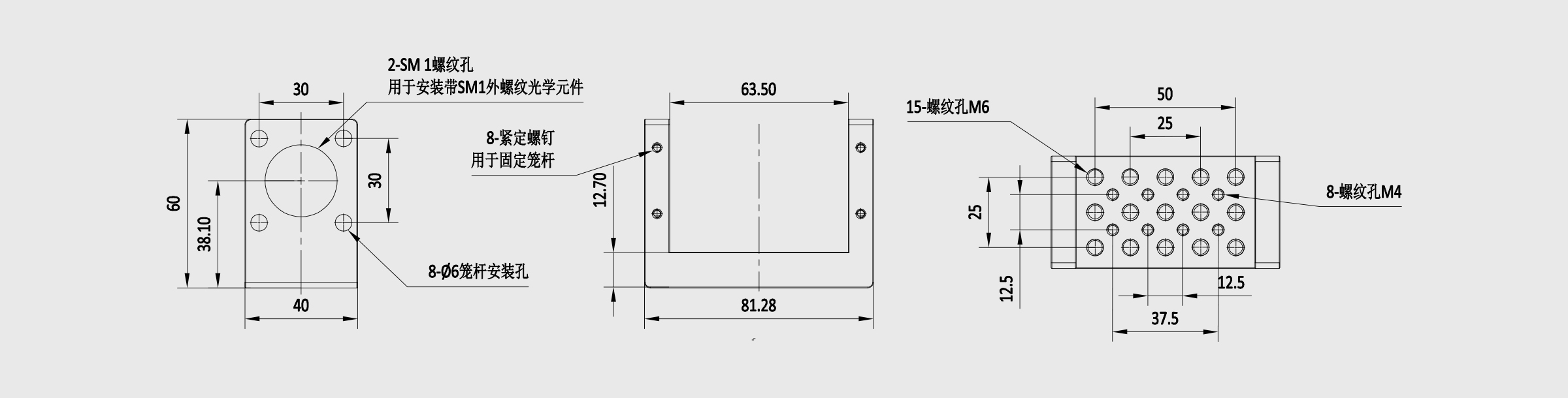 新品 30mm笼式系统U形平台 两端SM1螺纹孔 安装孔M6、M4