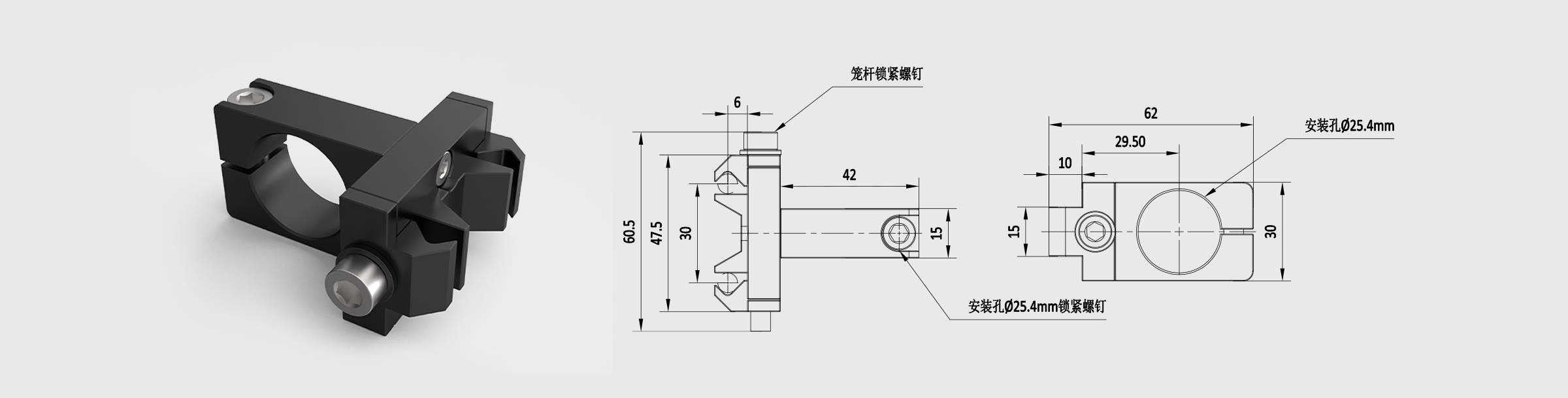 新品 30mm笼式系统接杆夹具座 夹持支撑杆25.4mm