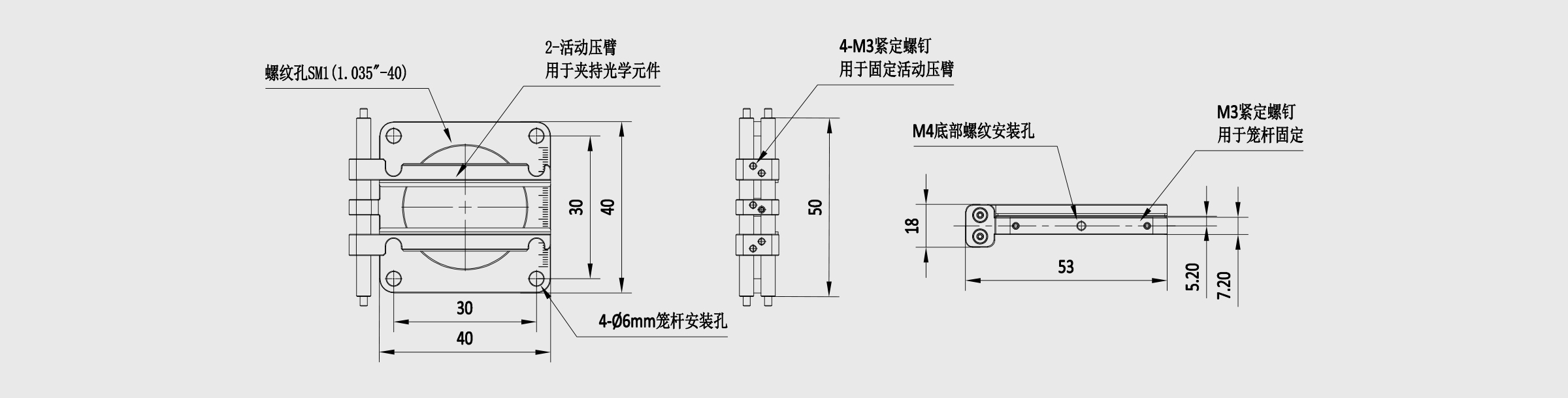 新品 30mm笼式系统柱镜安装座 螺纹孔SM1 安装镜片高度4.6~18.7mm