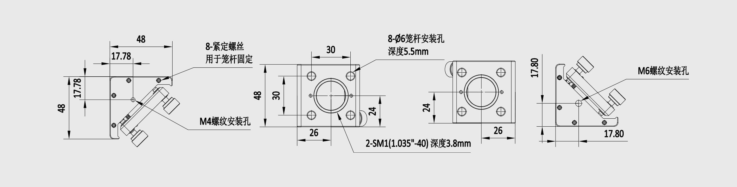 新品 30mm笼式系统直角光学镜架 Φ6mm笼杆安装孔