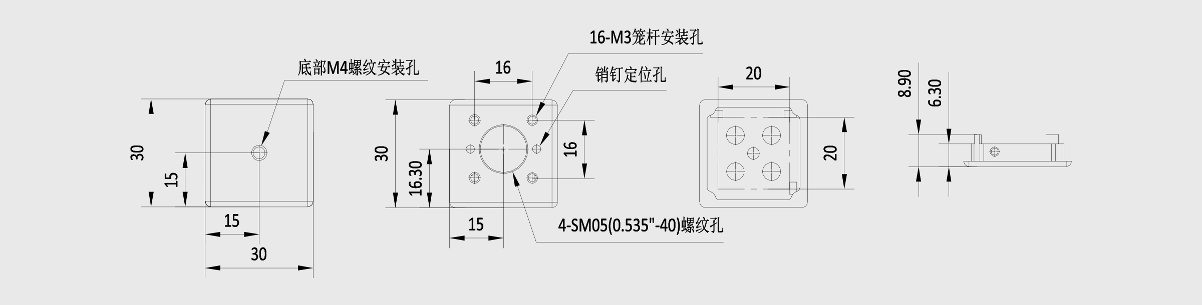 螺纹规格 M4螺纹孔