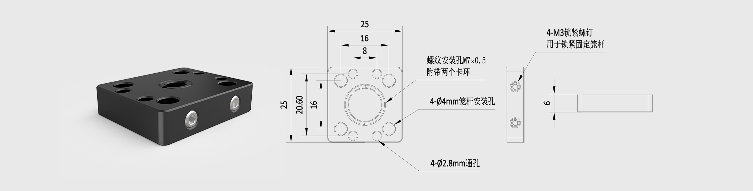 新品 16mm笼式安装板 安装镜片尺寸Φ6mm