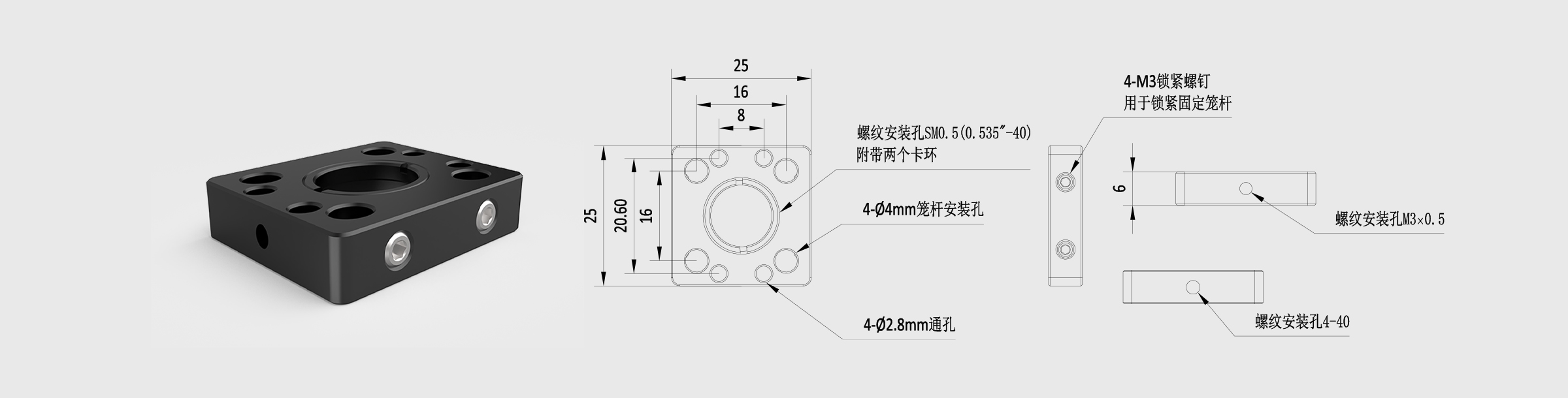 2. 光学元件固定方式:附带2个SM2压圈