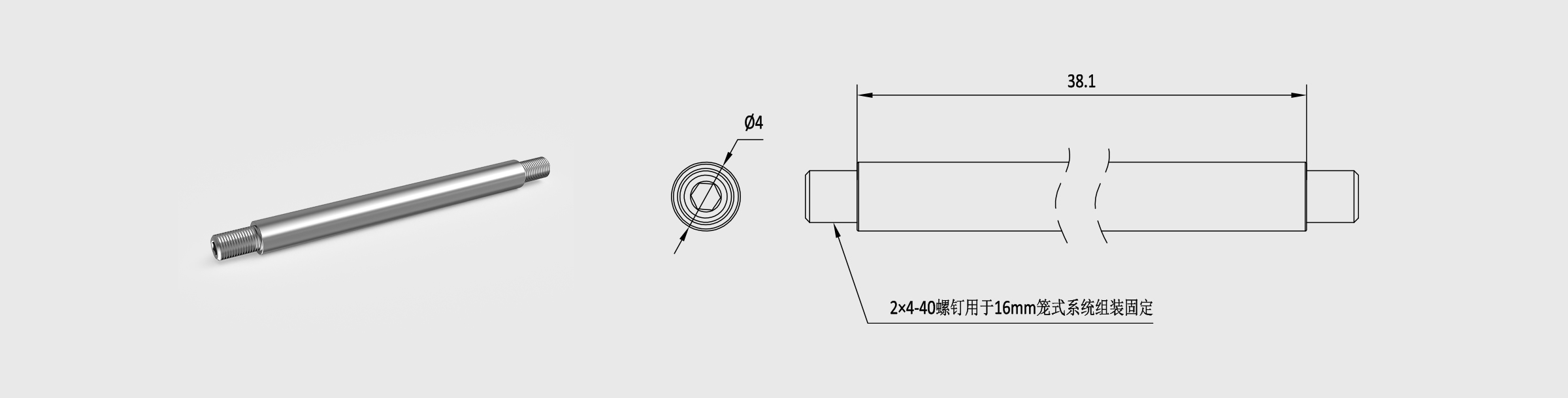 新品 Φ4mm笼式安装接杆 长38.1mm 螺纹孔4-40