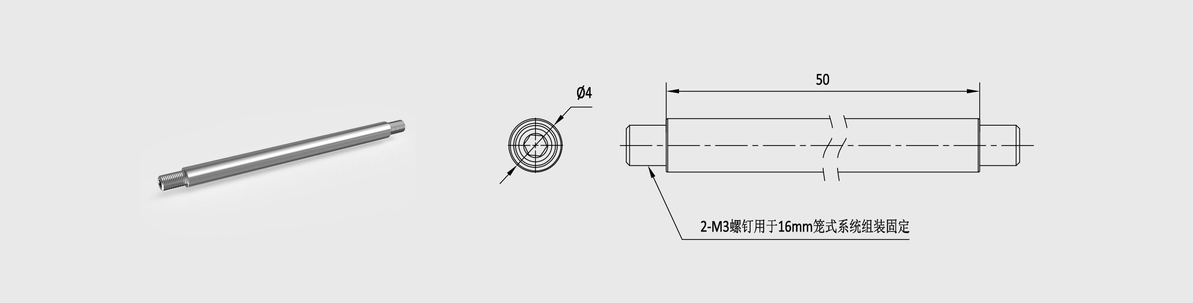 新品 Φ4mm笼式安装接杆 长50mm 螺纹孔M3