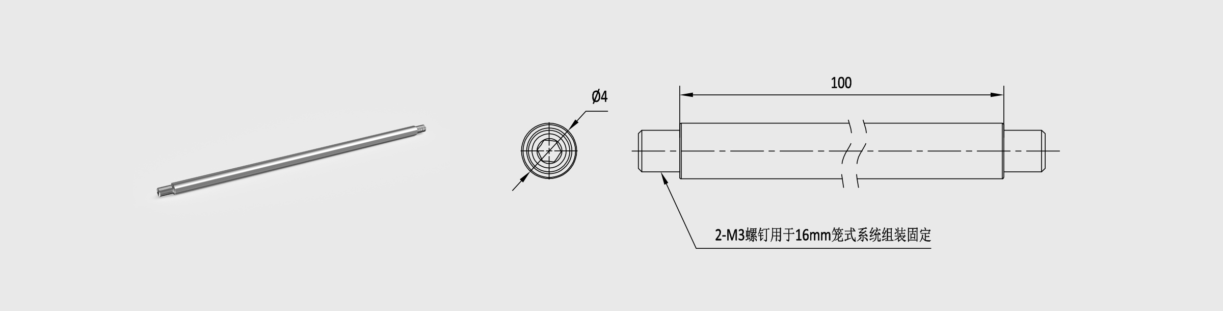 新品 Φ4mm笼式安装接杆 长100mm 螺纹孔M3
