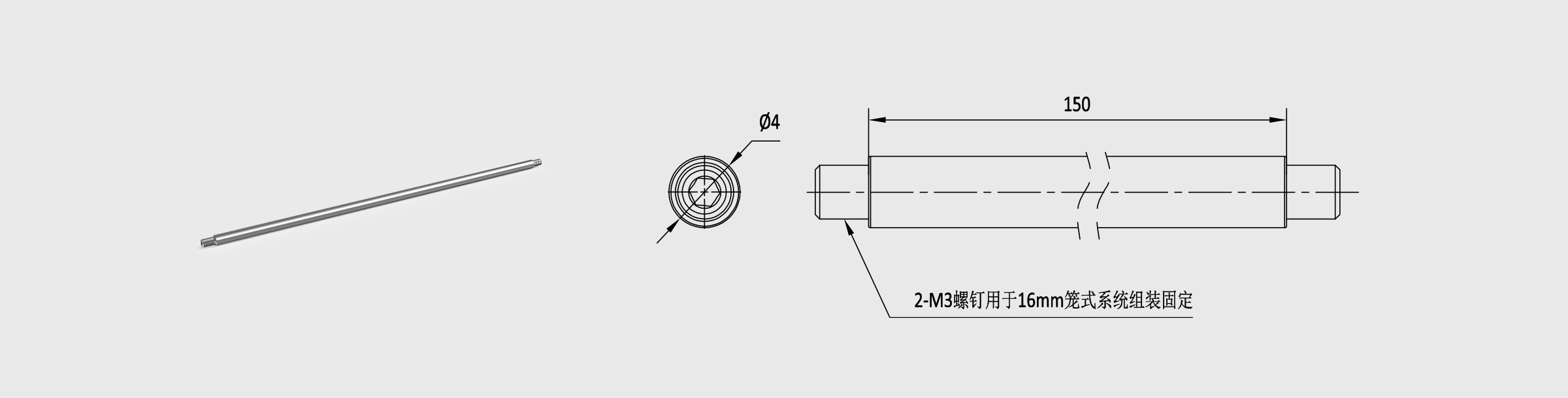 新品 Φ4mm笼式安装接杆 长150mm 螺纹孔M3
