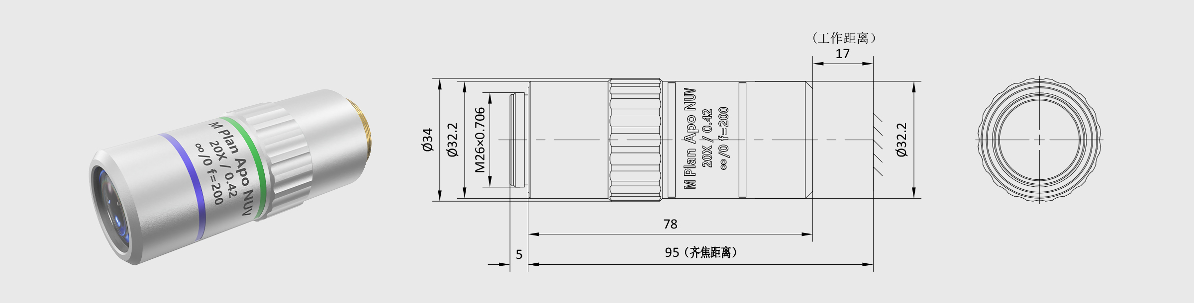 新品 355-700nm显微物镜 GA 20× M plan Apo NUV