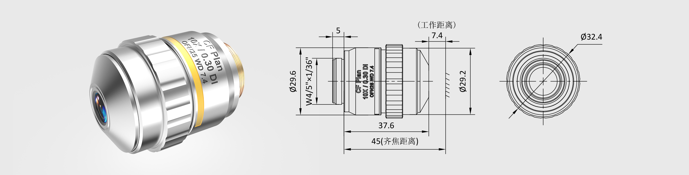 新品 白光干涉物镜 10× 齐焦45mm CF Plan DI