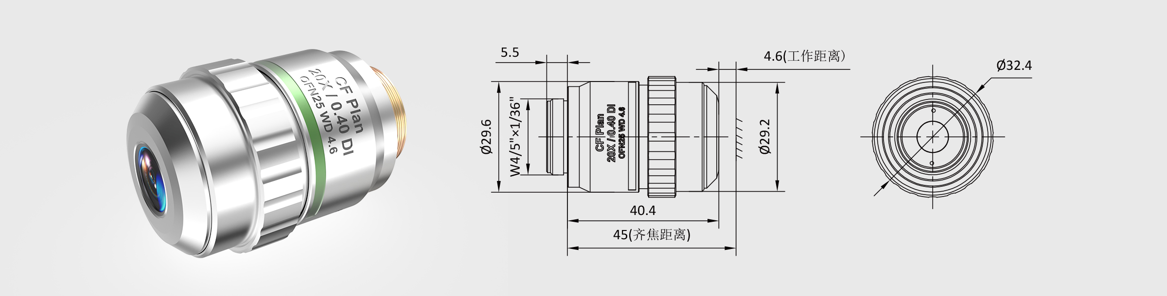新品 白光干涉物镜 20× 齐焦45mm CF Plan DI
