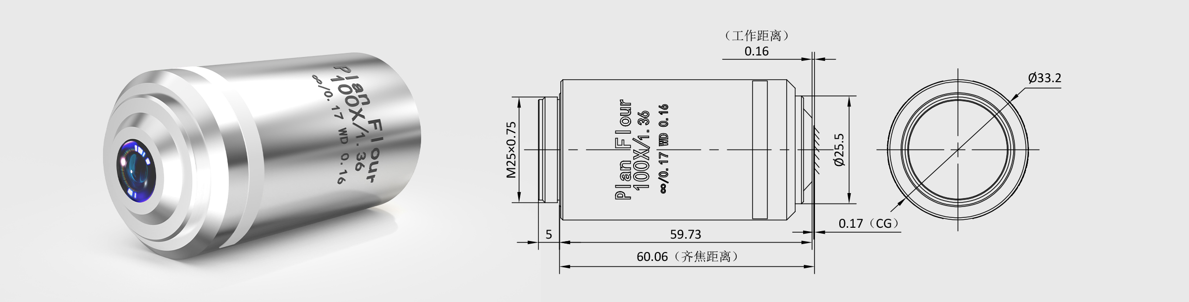 - 适配盖玻片厚度 0.17mm