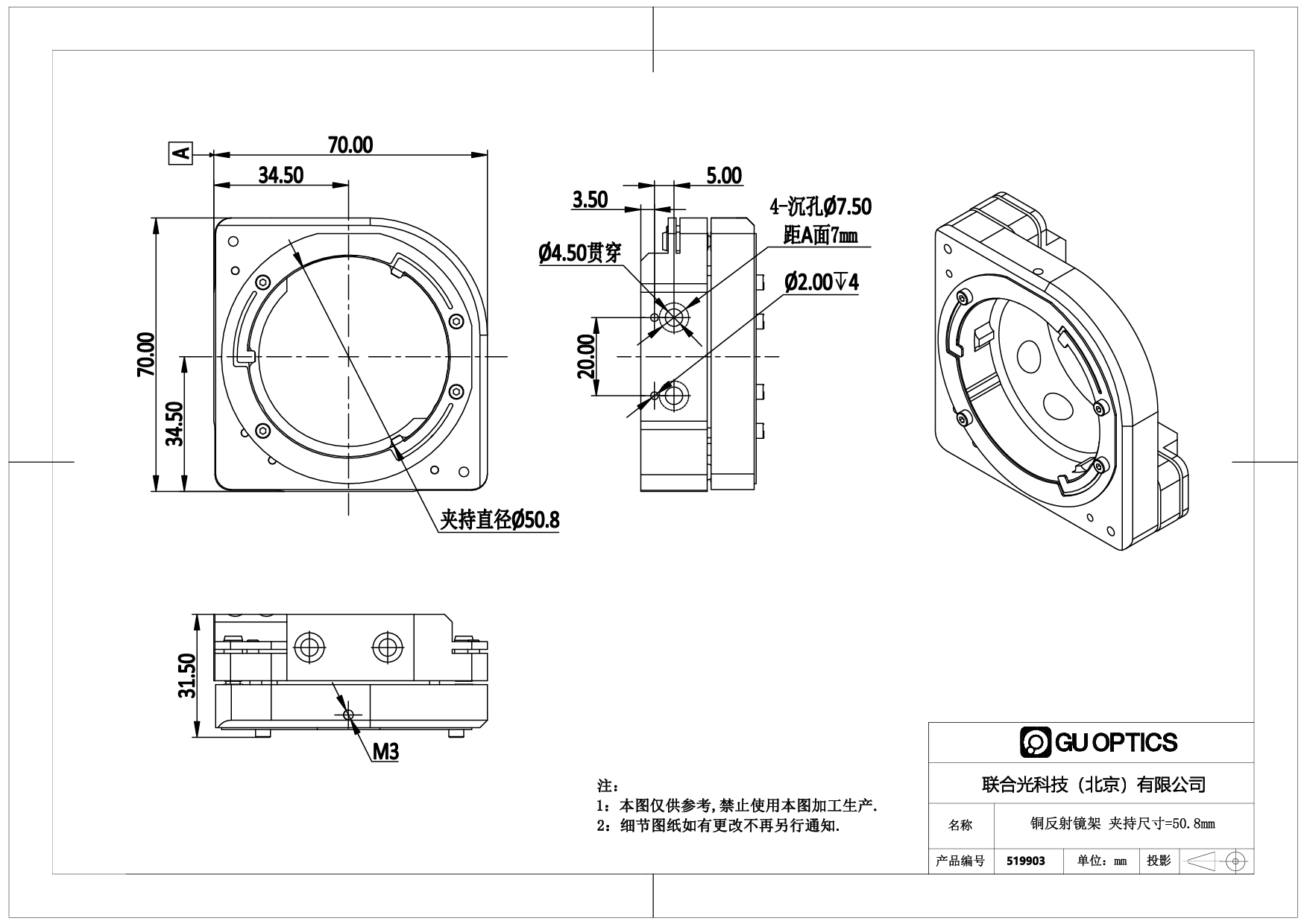 锁紧方式采用的径向锁紧,避免锁紧时引起的光路漂移,由于光学调整架的热变形是可以表征的,并且可以通过热膨胀补偿来控制这些变形,因此光学调整架的热变形是几乎可以消除的铜的热膨胀系数低于铝,从而使其在温度波动期间更稳定。