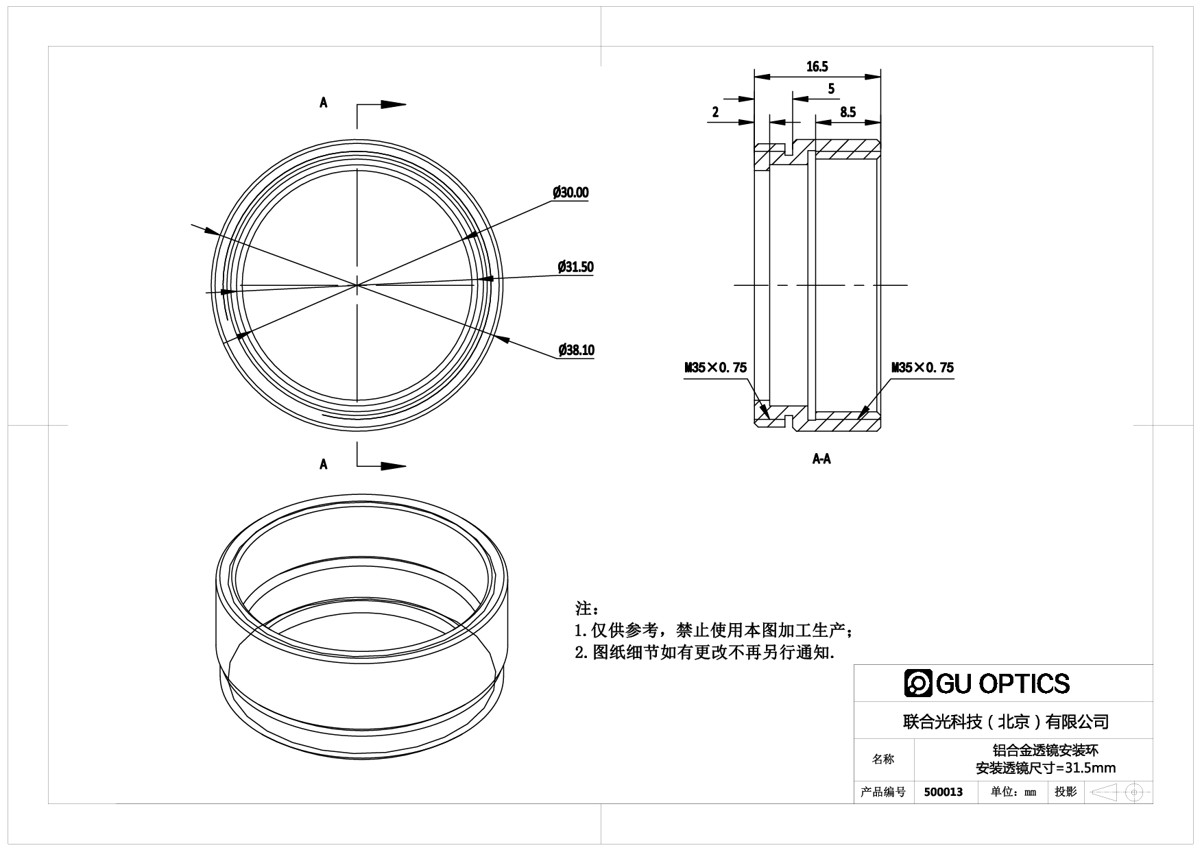 透镜安装环 Ø38.1mm L=11.5mm 螺纹接口-M35x0.75