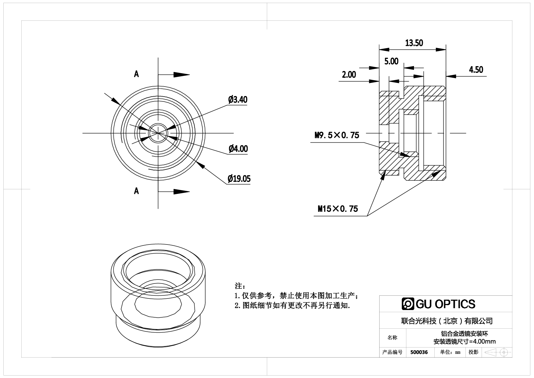 透镜安装环 Ø19.05mm L=8.5mm 螺纹接口-M15x0.75