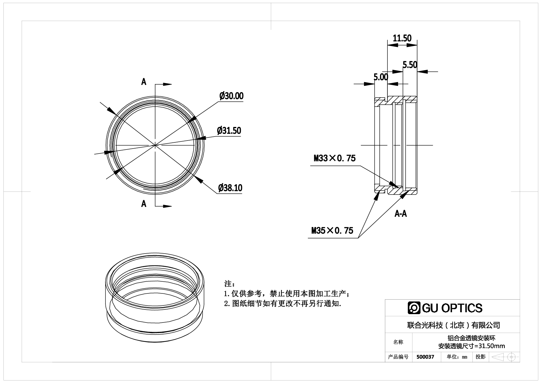 透镜安装环 Ø38.1mm L=11.5mm 螺纹接口-M35x0.75