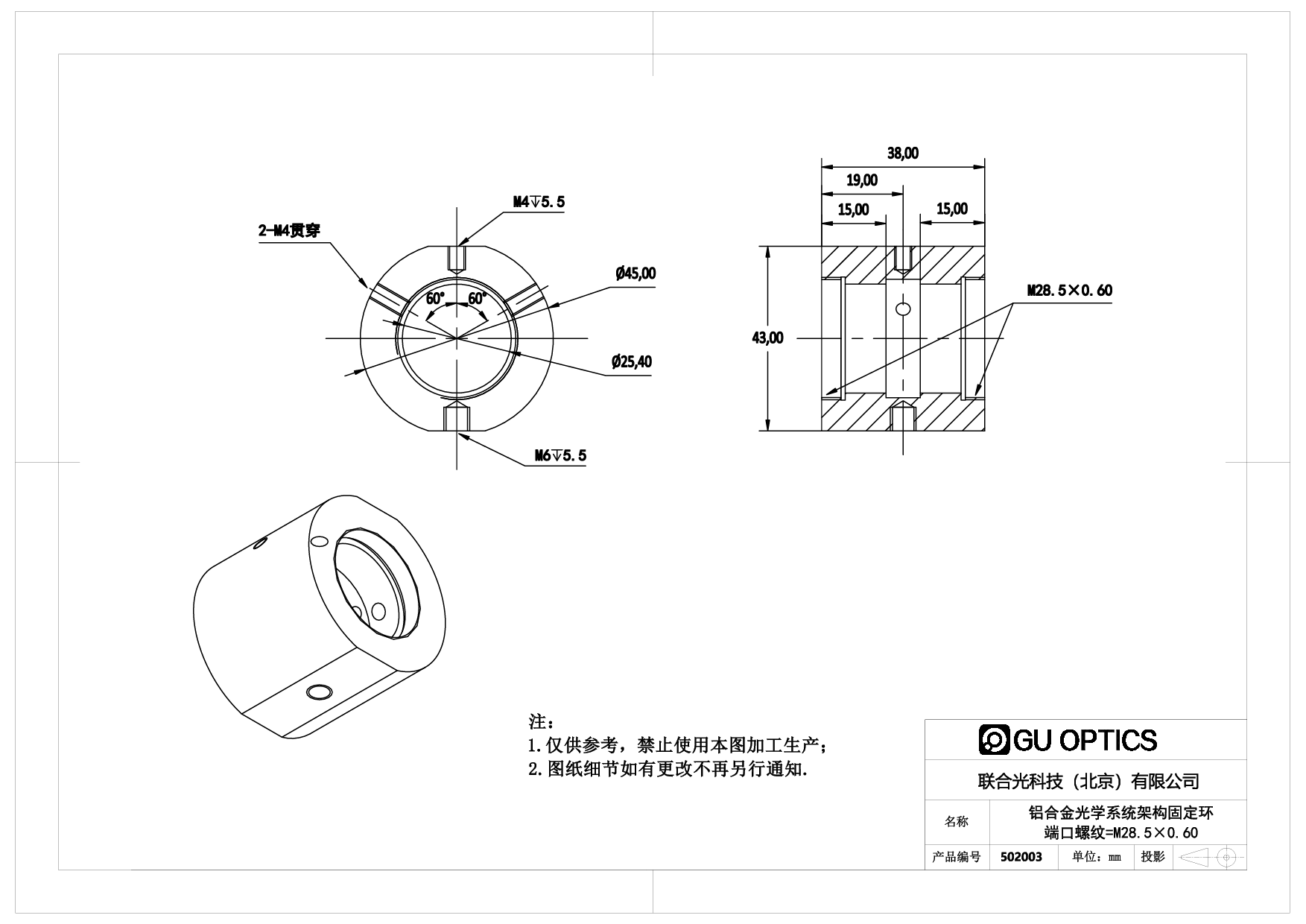 2. 502000—502009也可用来夹持延长筒,镜筒,激光器等
