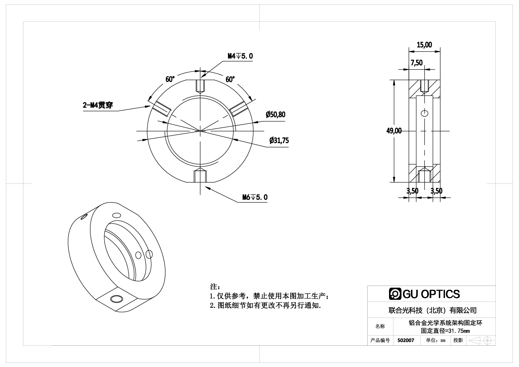 2. 502000—502009也可用来夹持延长筒,镜筒,激光器等