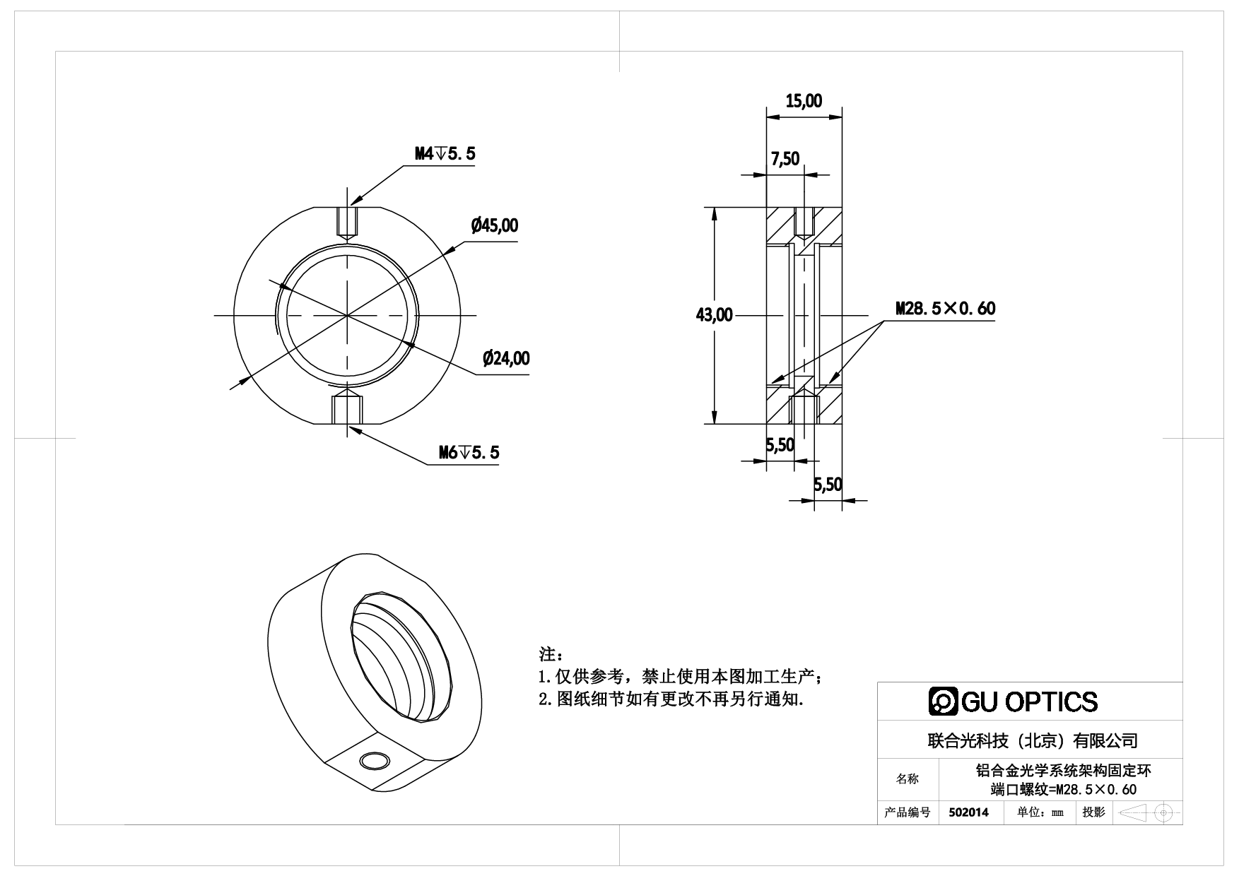 2. 502000—502009也可用来夹持延长筒,镜筒,激光器等