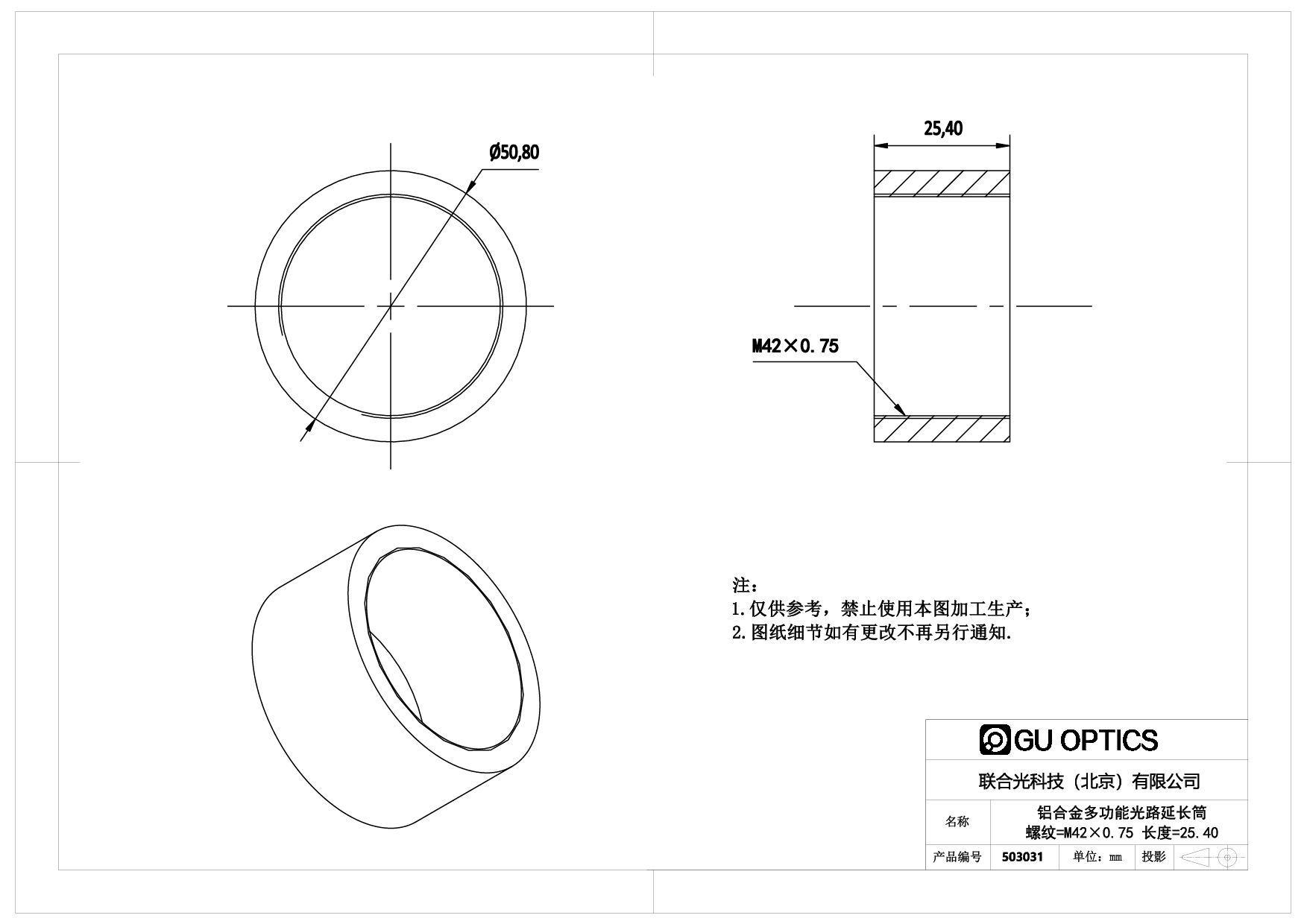 多功能光路延长筒 Ø50.8mm L=25.4mm