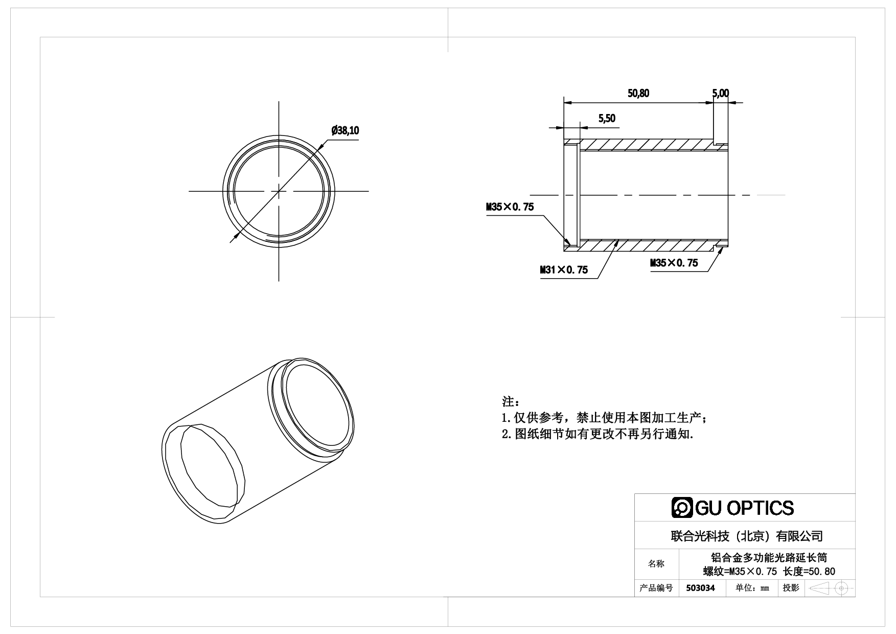 多功能光路延长筒 Ø38.1mm L=50.8mm