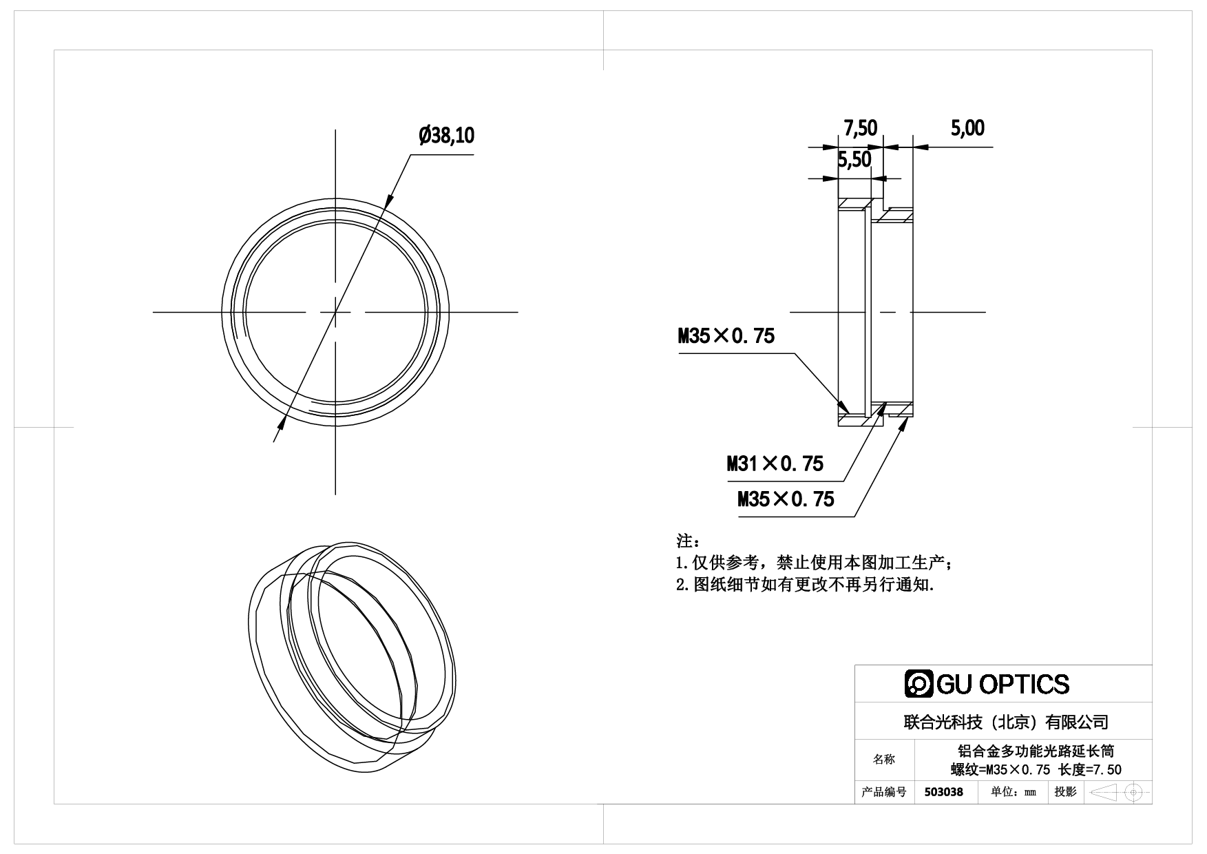 多功能光路延长筒 Ø38.1mm L=7.5mm