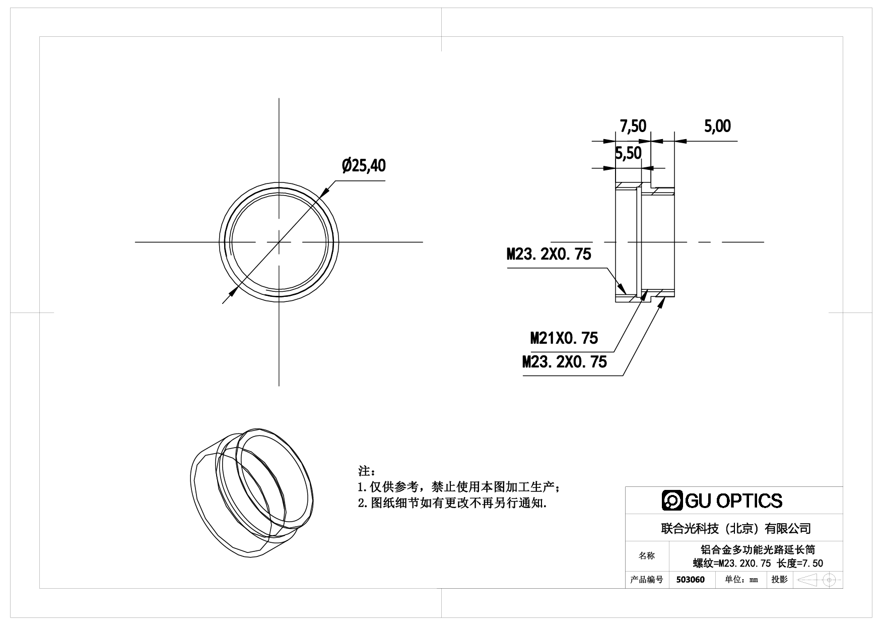 多功能光路延长筒 Ø25.4mm L=7.5mm