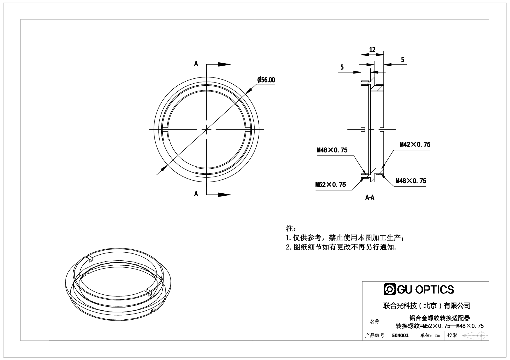 - 端口1--螺纹规格 M52x0.75阳