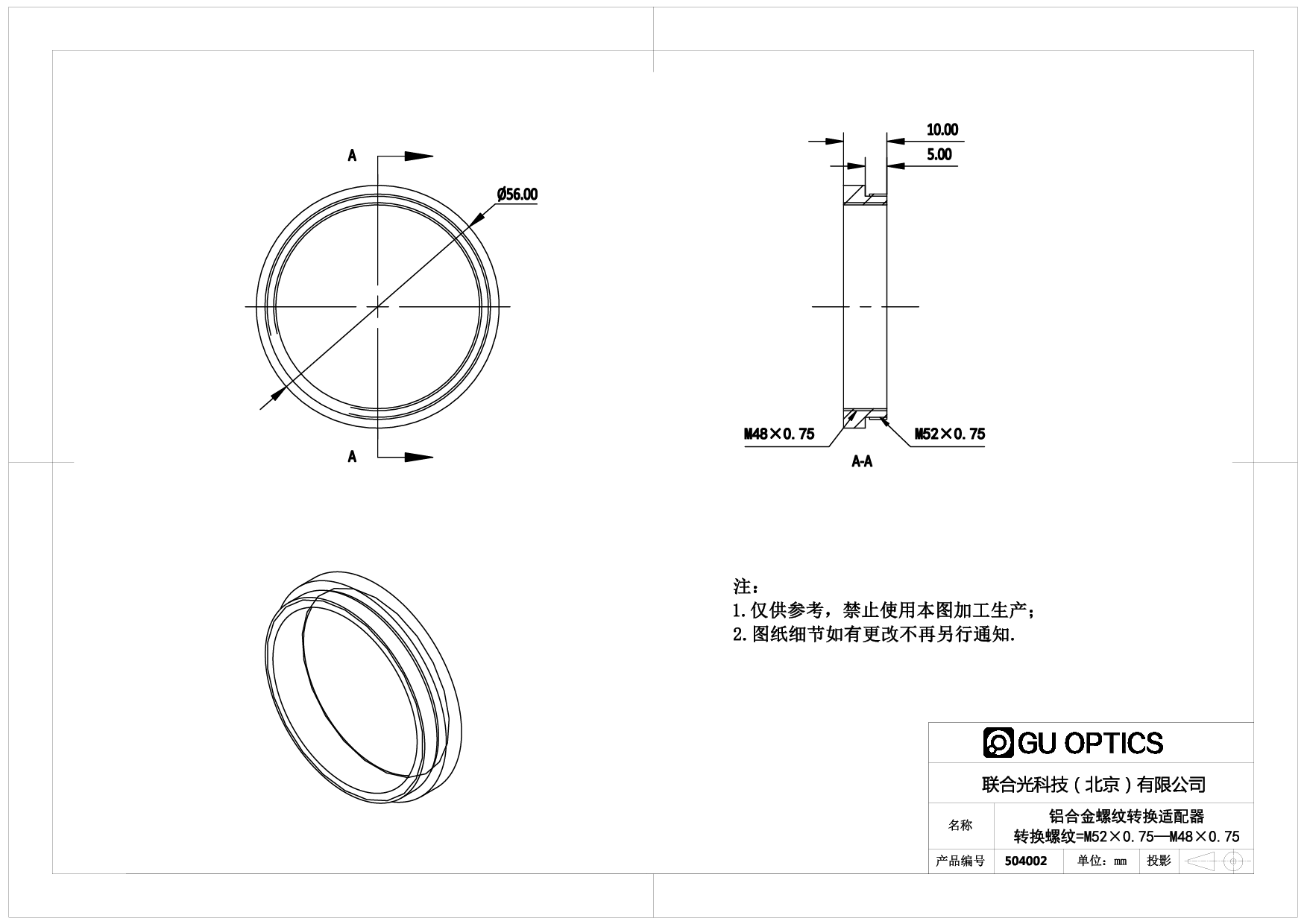 所有螺纹转换适配器都采用精密CNC数控加工,具有极高的尺寸精度以及良好的同心度和一致性,可使不同部件相互连接后的整体光路同轴。螺纹转换器还提供了和其他通用品牌的实验室光机部件之间的螺纹转换适配器(光桥系统和SM1、SM2、SM05匹配连接的螺纹转换接口等)。用户可以方便的将光桥系列产品应用到已经使用的光学架构系统中,从而节省从国内外采购同类产品的昂贵成本。