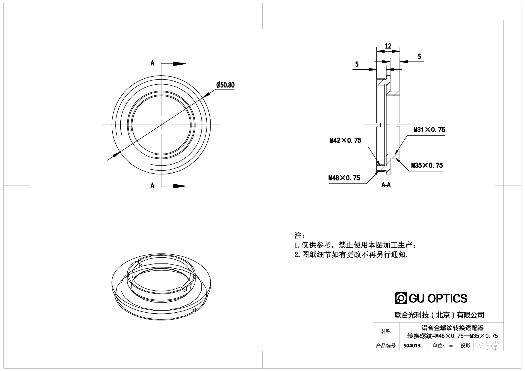 所有螺纹转换适配器都采用精密CNC数控加工,具有极高的尺寸精度以及良好的同心度和一致性,可使不同部件相互连接后的整体光路同轴。螺纹转换器还提供了和其他通用品牌的实验室光机部件之间的螺纹转换适配器(光桥系统和SM1、SM2、SM05匹配连接的螺纹转换接口等)。用户可以方便的将光桥系列产品应用到已经使用的光学架构系统中,从而节省从国内外采购同类产品的昂贵成本。