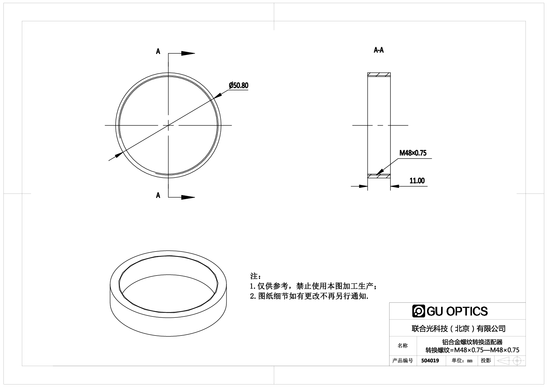 螺纹转换适配器 Ø50.8mm L=11mm