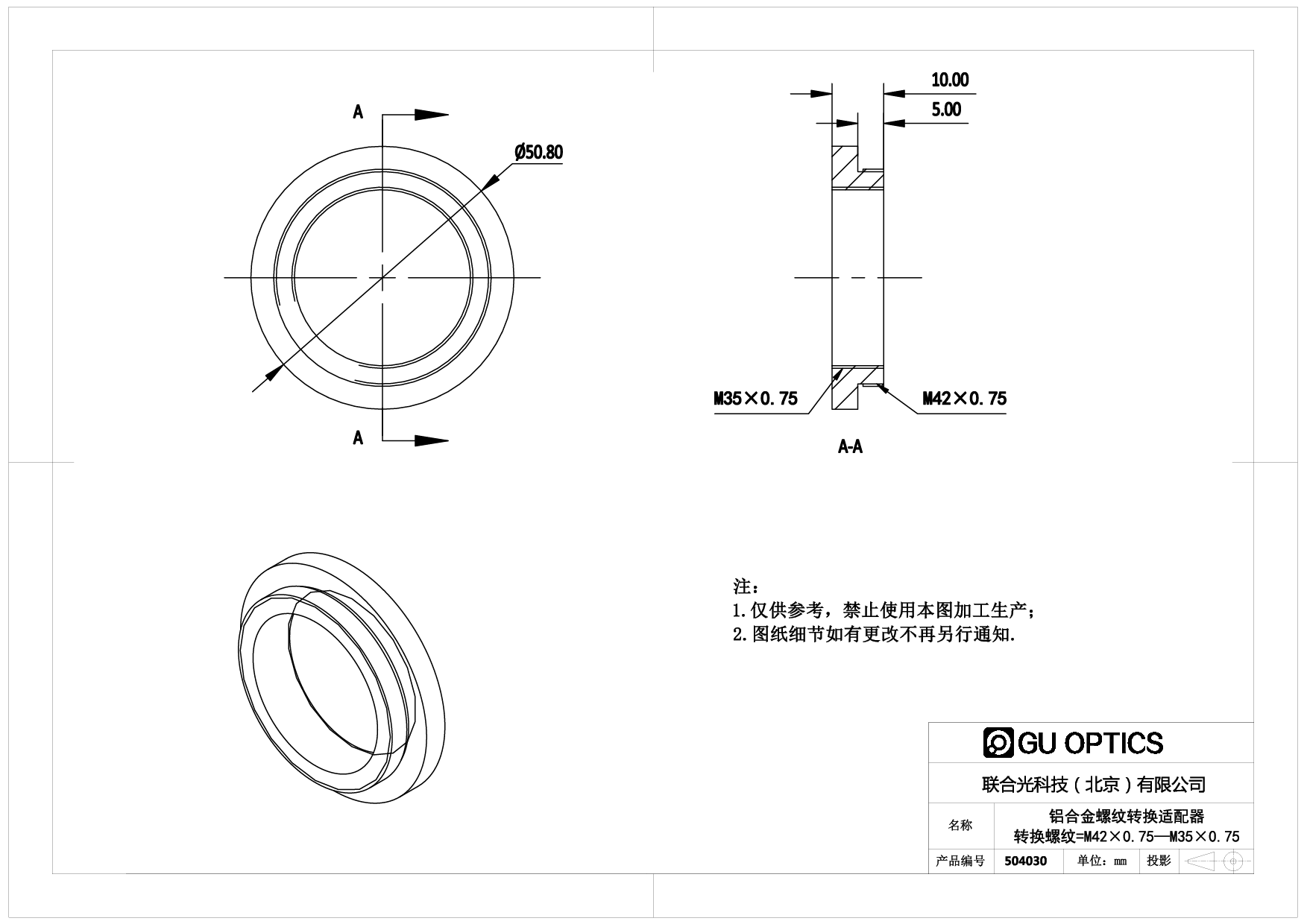 螺纹转换适配器 Ø50.8mm L=10mm