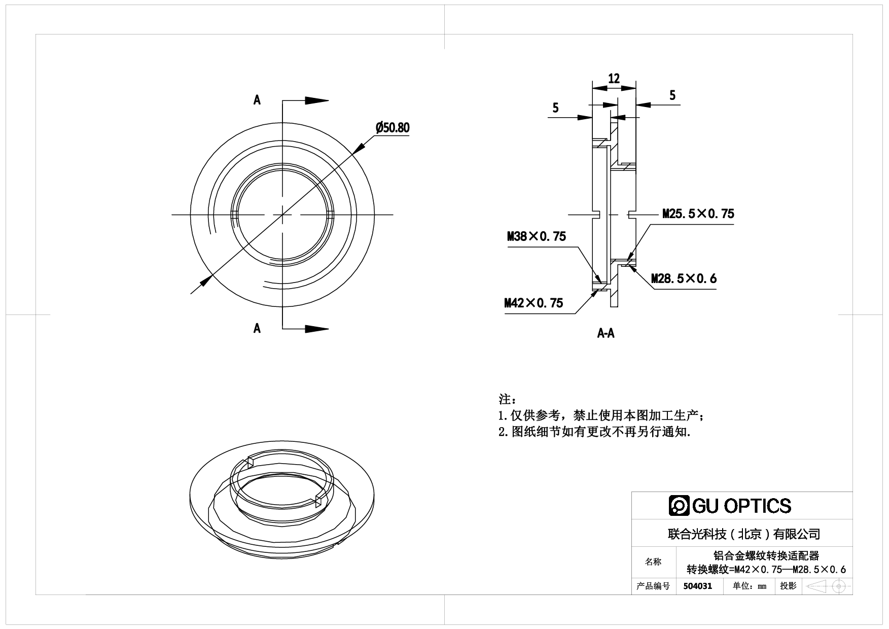 螺纹转换适配器 Ø50.8mm L=12mm
