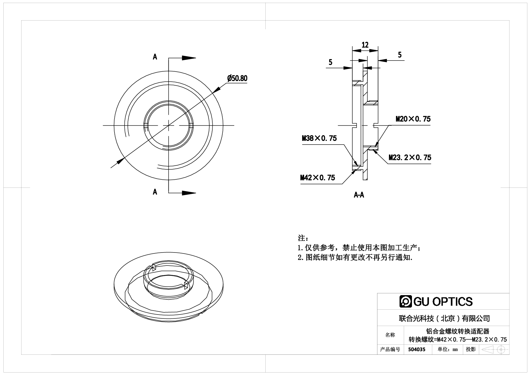 螺纹转换适配器 Ø50.8mm L=12mm
