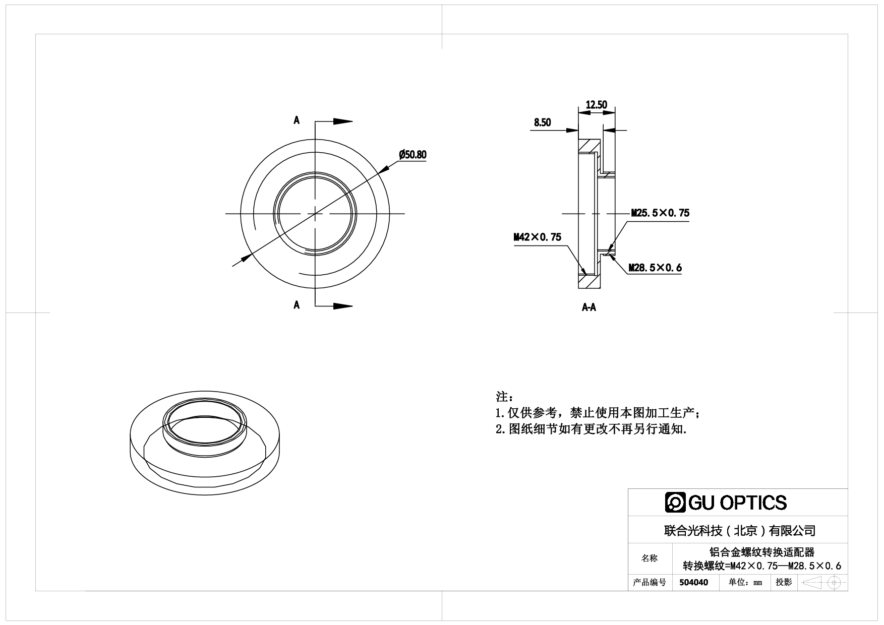 螺纹转换适配器 Ø50.8mm L=12.5mm