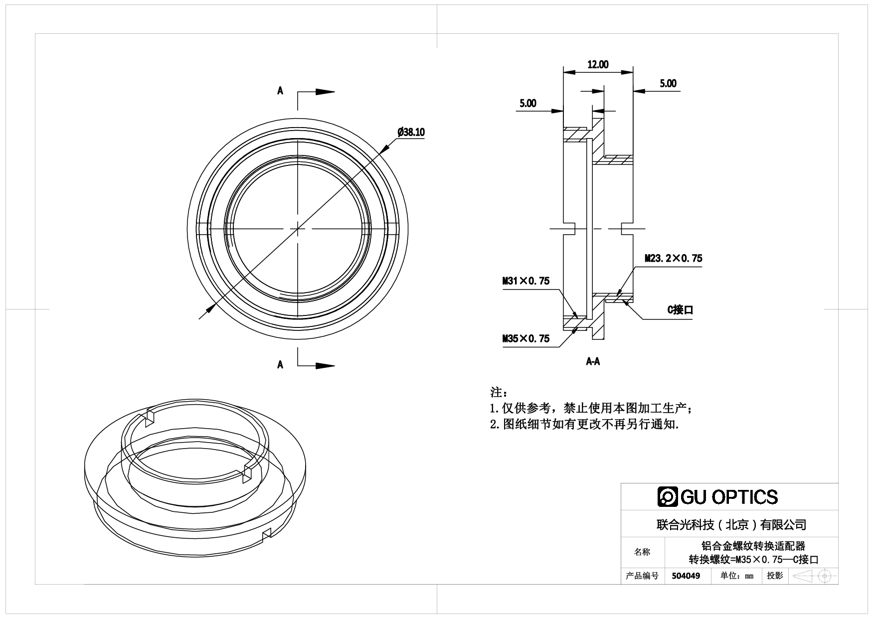 所有螺纹转换适配器都采用精密CNC数控加工,具有极高的尺寸精度以及良好的同心度和一致性,可使不同部件相互连接后的整体光路同轴。螺纹转换器还提供了和其他通用品牌的实验室光机部件之间的螺纹转换适配器(光桥系统和SM1、SM2、SM05匹配连接的螺纹转换接口等)。用户可以方便的将光桥系列产品应用到已经使用的光学架构系统中,从而节省从国内外采购同类产品的昂贵成本。