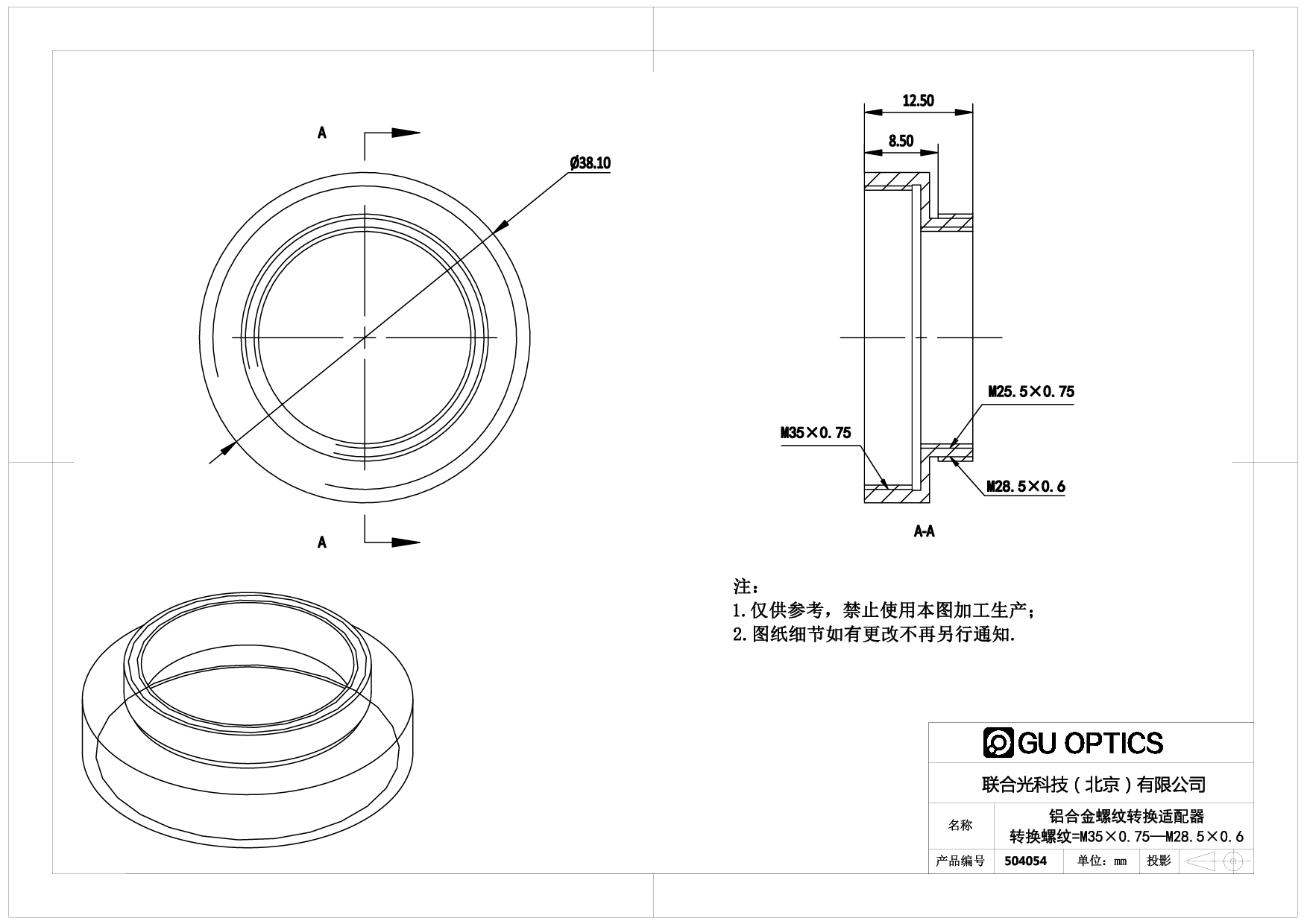 螺纹转换适配器 Ø38.1mm L=12.5mm