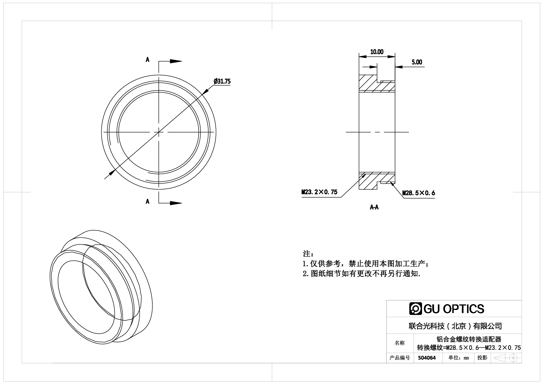 螺纹转换适配器 Ø31.75mm L=10mm