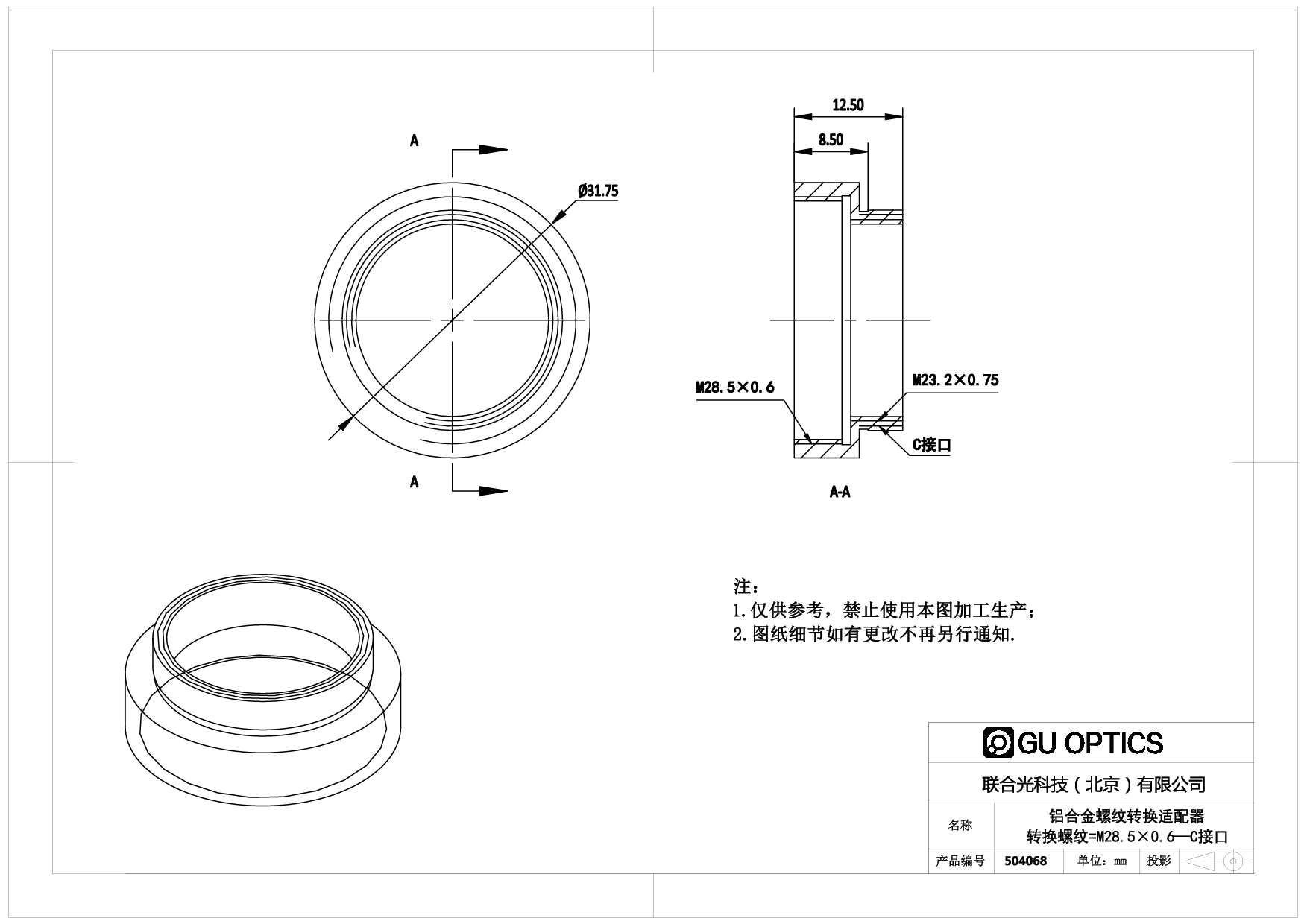 所有螺纹转换适配器都采用精密CNC数控加工,具有极高的尺寸精度以及良好的同心度和一致性,可使不同部件相互连接后的整体光路同轴。螺纹转换器还提供了和其他通用品牌的实验室光机部件之间的螺纹转换适配器(光桥系统和SM1、SM2、SM05匹配连接的螺纹转换接口等)。用户可以方便的将光桥系列产品应用到已经使用的光学架构系统中,从而节省从国内外采购同类产品的昂贵成本。